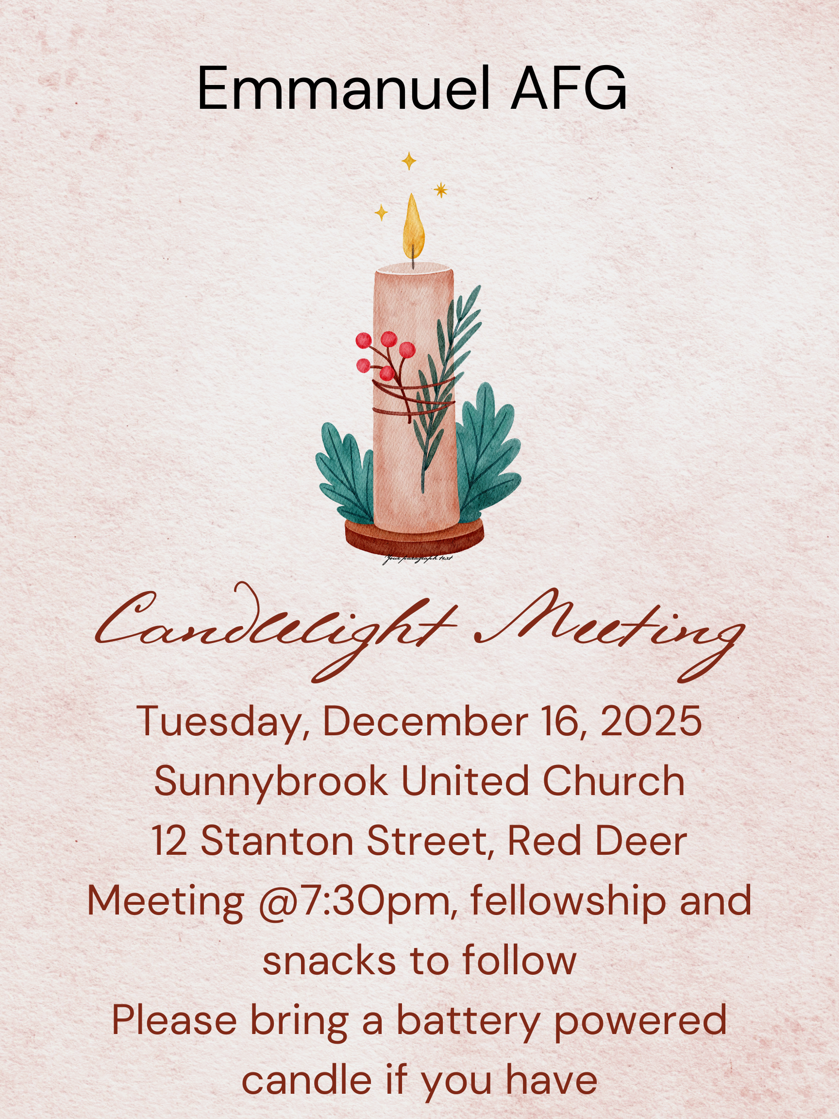 Nu-Life Gratitude Meeting When: December 10th at 7:30pm-9:00pm Where: Mennonite Church (11210-59 Avenue Edmonton) Join us for a meeting followed by fellowship; bring food to share. *Note front door is locked at 7:45pm |