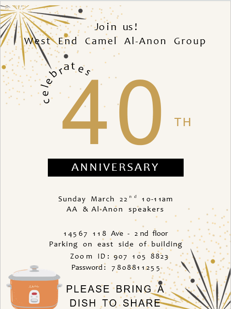 Only Al-Anon and Alateen related events will be posted in the calendar. Email to events@al-anon.ab.ca to have an event added.